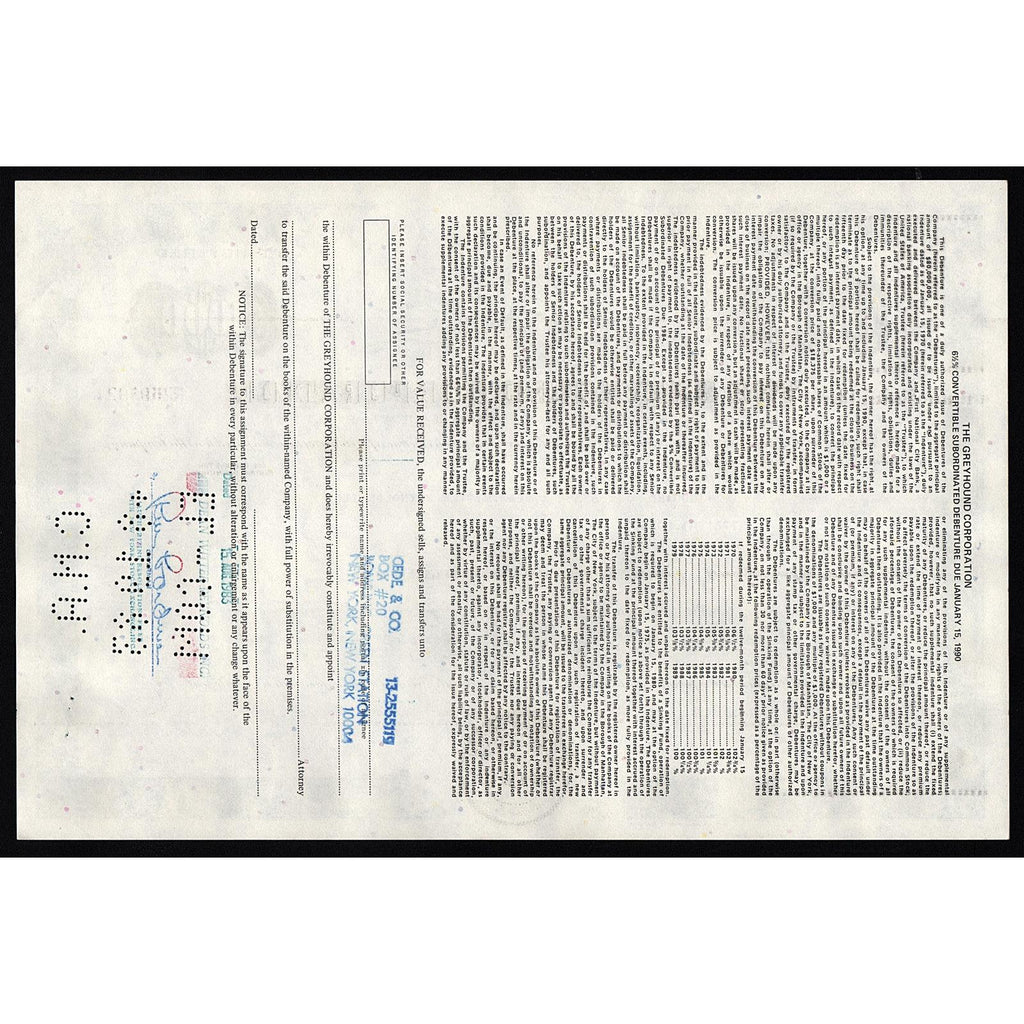 6½% Convertible Subordinated Debenture Due January 15, 1990. Dated 1983, for $1000, in the State of  Arizona. Issued and punch cancelled, certificate is in very good condition, with a few pin/staple holes. 20 x 30 cm.