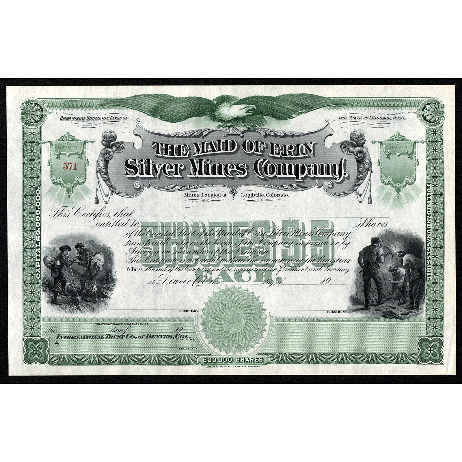 Dated Denver, Col., 19__, No. 571, incorporated under the laws of the State of Colorado. Unissued and uncancelled, certificate is in very good condition, with a minor crease. 18 x 27 cm.