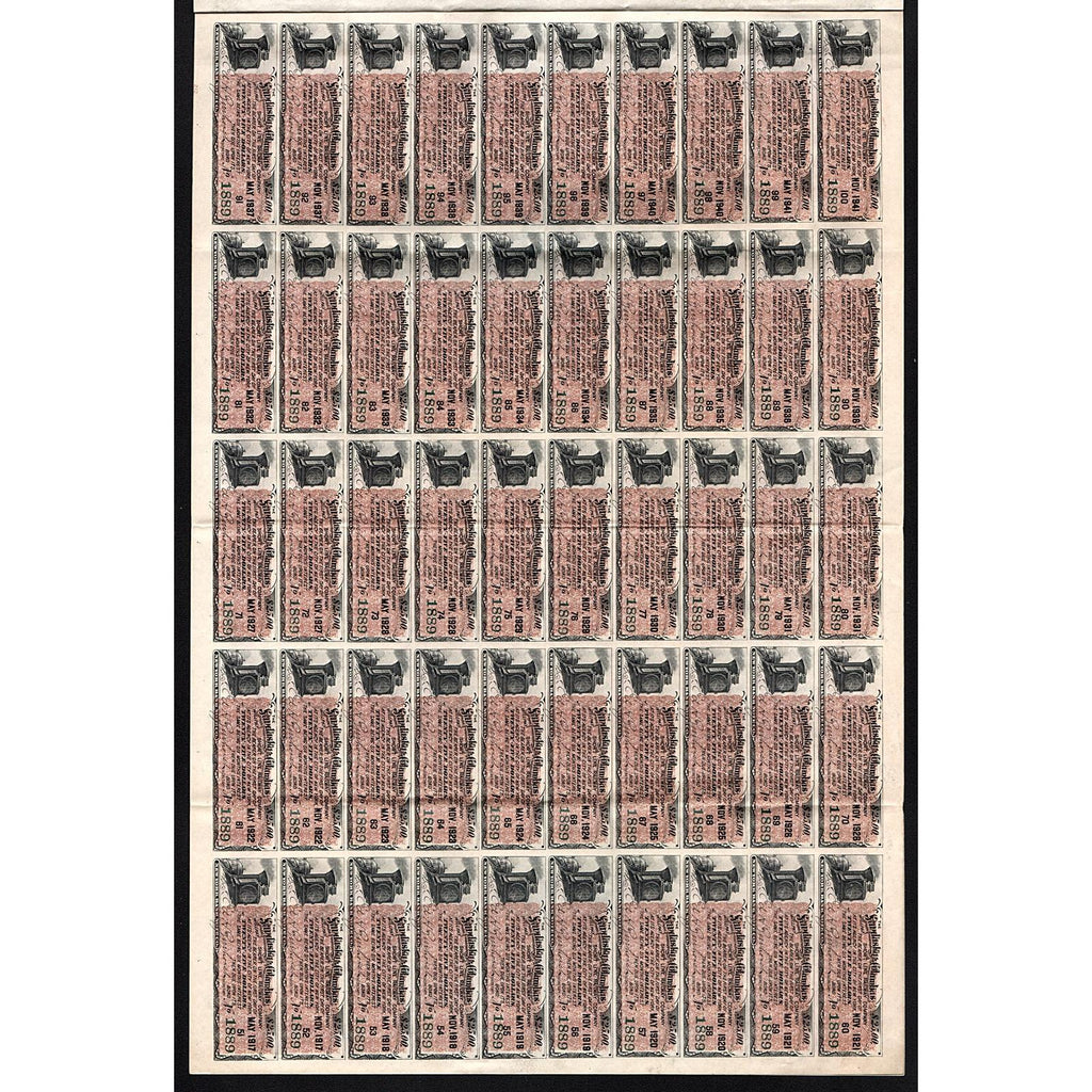 First Mortgage Five Per Cent. Gold Bond. Dated at City of Sandusky, State of Ohio, October 31, 1891, No. 1889, for $1000, in the State of Ohio. Issued and uncancelled, certificate is in good condition, with fold marks, slight edgewear, and coupons 11-100 (on 2 sheets) attached. 37 x 25 cm.